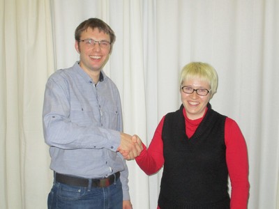 Das Bild zeigt den ersten Vorsitzenden Tobias Schiller (links) und die neue Dirigentin Monika Wagner (rechts).