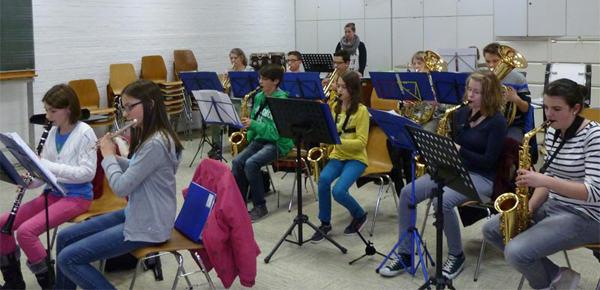 Jugendkapelle BAB unter der Leitung von Dirigent Christoph Erb bei den Probearbeiten für das Jugendfestival und das Wertungsspiel.